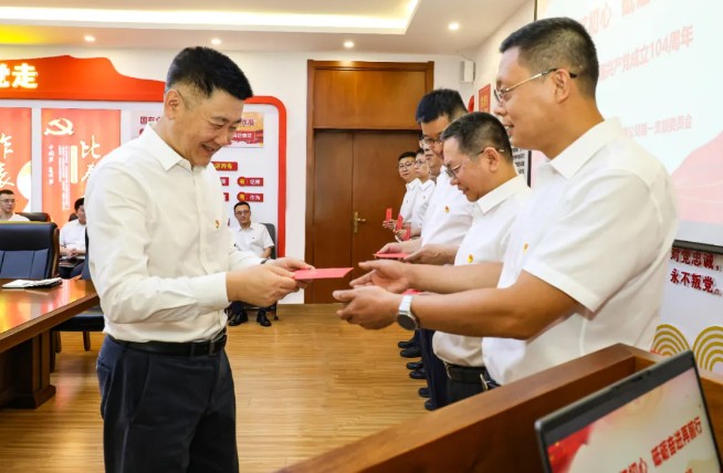 在庄重而温馨的“政治生日”赠礼仪式上,张冠武为在七月份入党的党员代表发放承载组织关怀的“生日贺卡”。党员代表围绕“入党为什么、在党做什么、为党留什么”这一主线,结合工作实践分享了从入党初心到岗位奉献的成长历程。 “我志愿加入中国共产党……”在重温入党誓词环节,全体党员肃立面向党旗,重温铿锵誓言,将每一句誓言都化作对党的无限忠诚、对使命的执着坚定。 此次活动通过“政治生日”这一庄重仪式,将党性教育与情感共鸣深度融合,既让党员感受到组织的温暖,更激励大家以如磐初心在集团高质量发展中勇当先锋。 下一步,集团机关党委将持续创新党员教育形式,推动“政治生日”成为强化党员身份意识的重要载体,引导集团总部全体党员以实际行动书写新时代乐虎(中国)答卷。 |