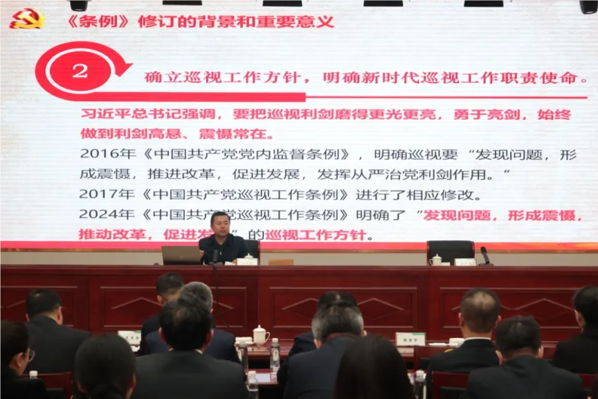 培训中,关书强从《中国共产党巡视工作条例》修订的意义、主要内容以及如何学习贯彻好《条例》等方面,作了深入浅出的讲解。培训现场,大家仔细听、认真记。一致认为,《条例》是规范巡视工作、强化党内监督的重要基础性法规,对于落实全面从严治党、依规治党要求,贯彻中央巡视工作方针,深入推进党风廉政建设和反腐败斗争,加强党组织领导班子和干部队伍建设,推动党的先进性和纯洁性建设,具有十分重要的意义。