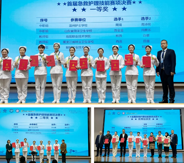 金砖国家技能发展与技术创新大赛是2017年金砖国家最高领导人会晤筹备委员会认可、经中华人民共和国外交部备案、金砖国家工商理事会批准的国际大赛,已成功举办七届,累计30万余人次参与了竞赛、会议、技术交流。 此次比赛,分教师组、中职组、高职组三个赛道,来自全国92所大中专院校的118支队伍、236人采取理论考试与实操相结合的方式展开激烈角逐。 比赛过程中,参赛选手精神饱满、训练有素,在急救过程中展现了良好的团队协作能力,急救技能操作熟练,能快速完成心肺复苏、除颤、吸氧等关键操作,在处理患者的导管固定、氧流量的调节等细节问题上也表现出了较高的专业素养。 经过三天的角逐,岳阳职院、黑龙江省林业卫生学校、聊城职院的参赛教师获教师组一等奖;温州护士学校、山东省菏泽卫生学校的参赛选手获中职组一等奖;岳阳职院、广东江门中医药职业学院、漯河医学高等专科学校、聊城职院、成都职院、黔南民族医学高等专科学校、河南护理职院的参赛选手获高职组一等奖。