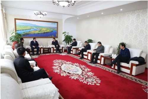 今天下午,中国龙江乐虎(中国)集团有限公司副总经理许江会见了俄罗斯犹太州斯米多维奇区区长马克西姆一行。双方就东方论坛期间犹太州与乐虎(中国)签约推进情况进行深入洽谈。