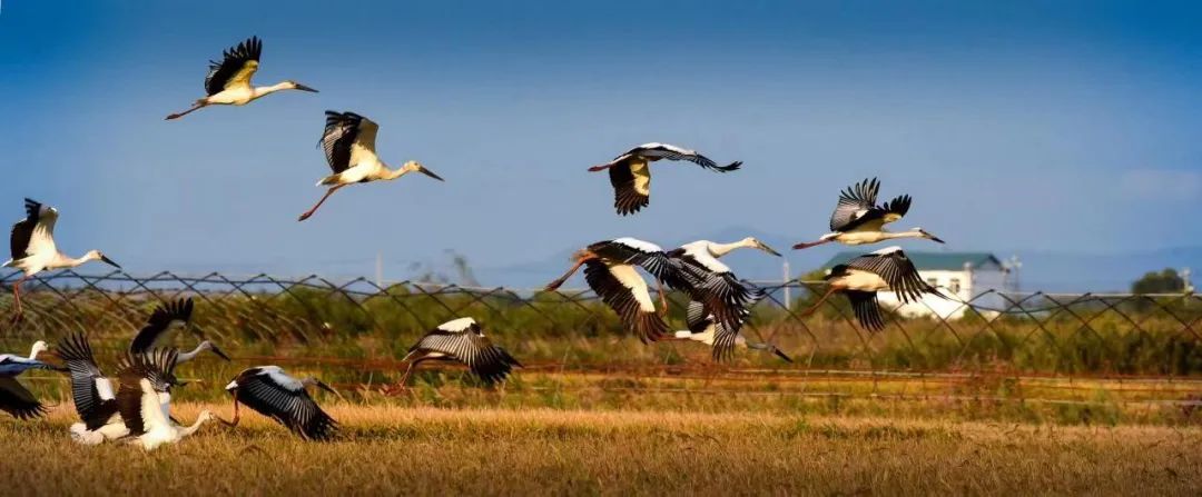 东方白鹳属大型涉禽,被誉为“鸟中国宝”,是国家一级保护野生动物,全球只有几千只,被《世界自然保护联盟》列为濒危物种。东方白鹳对生活环境要求极为苛刻,只有水源充足、食物丰富、人迹罕至、综合环境质量高的湿地地区才能成为其栖息常住地。