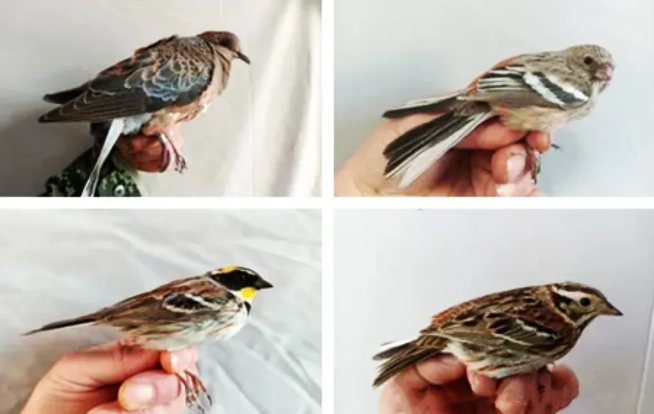 “鸟类环志工作包括布网、巡网、摘鸟、鉴定、上环、测量和记录、放归、统计分析等步骤……”在环志工作开展前,自然保护区管理局环志站长从鸟类环志技术规程方面为王鑫雪、马雨含进行了专题培训,随后他们跟着环志工作人员一起严格按照鸟类环志技术规范和操作流程进行鸟类环志工作。 目前他们已经环志了山斑鸠1只、长尾雀5只、锡嘴雀1只,银喉长尾山雀2只,黄喉鹀14只、灰头鹀4只、田鹀4只、红喉歌鸲1只,松鸦1只、灰喜鹊1只。