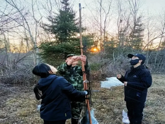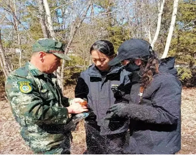 王鑫雪、马雨含是来自东北林业大学的在读研究生,为了进一步提高候鸟监测、鸟类识别、鸟类环志等专业技术水平,她俩来到东方红林区进行交流学习,并参与了今年春季鸟类环志实践。 “对保护区来说,候鸟越多,意味着生态越好。将来,如果世界上任何一个环志机构回收到这只鸟,通过鸟佩戴的金属脚环就能解读出这只鸟的迁徙时间、路线、停歇地、繁殖地等重要信息,并得到一张鸟类迁徙的‘神秘’地图。”王鑫雪介绍道。
