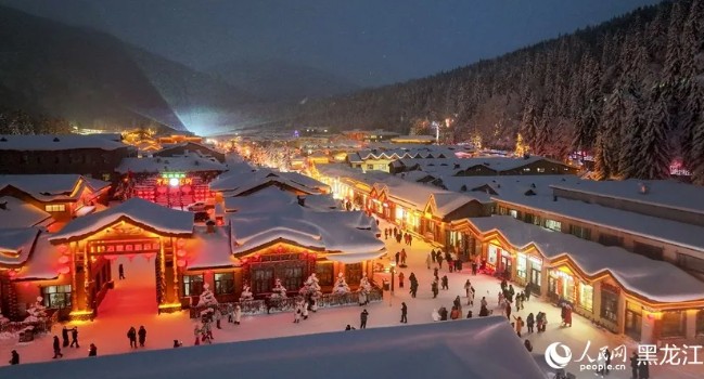 花车巡游、烟花秀、雪地蹦迪……新年期间,“年味儿”十足的雪乡景区为游客们提供更加多样化的游玩选择。造型各异的花车穿梭在雪韵大街,人声鼎沸的蹦迪广场如火如荼,绚丽的灯光秀交织出各种图案,五彩斑斓的烟花绽放在雪乡的夜空。(图片由人民网记者张哲鑫拍摄)