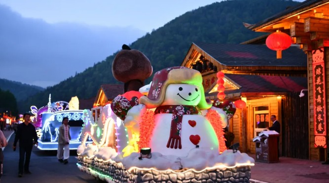 雪乡景区延续了冬季夜游的传统特色,花车巡游热闹非凡,各主题花车独具特色,像流动的童话世界;东北大秧歌热情奔放,舞步欢快,尽显民俗风情;民族乐器乐队演奏的乐曲悠扬动听,令人陶醉。游客们可以积极参与其中,深度感受浓郁的东北特色民俗文化。夜幕降临,璀璨的亮化景观逐一点亮,流光溢彩的灯光将雪乡装扮得宛如梦幻世界。露天蹦迪派对也随之激情开启,动感的音乐、绚烂的灯光,让游客在青山环抱之中尽情释放活力。与此同时,特色露天烧烤香气四溢,各类新鲜食材在炭火上滋滋作响,搭配上冰爽的啤酒,为游客带来舌尖上的极致享受。