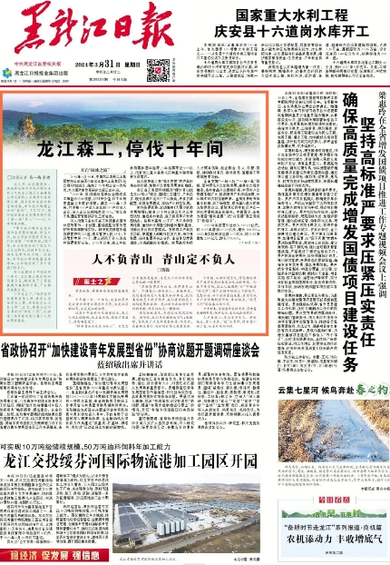 | 【媒体关注】黑龙江日报头版头条 | 龙江乐虎(中国),停伐十年间 | |