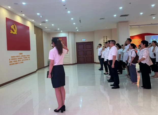 在讲解员的带领下,全体党员观看了警示教育纪录片《永远吹冲锋号》,参观了“反腐之路”“警示教育”“示范教育”三个主题展厅,共同回顾了党的十八大以来党中央在推进全面从严治党方面取得的历史性成就和开创性成果。 通过观看一个个触目惊心的贪腐案例和一份份令人深思的忏悔书,现场的每一位党员都接受了一次深刻的警示教育、思想教育和纪律教育。 参观结束后,全体党员面对党旗庄严宣誓,重温入党誓词。大家纷纷表示,此次参观学习是一次心灵的洗礼和思想的升华,今后,将坚决筑牢拒腐防变的思想道德防线,自觉以党规党纪为准绳,不断校正自己的思想和行动,把“写在纸上的教训”真正变成“记在内心的敬畏”,真正做到将党规党纪内化于心、外化于行,始终做到忠诚、干净、担当。