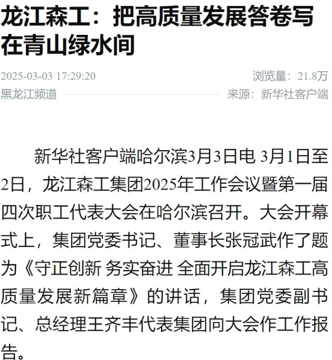 新华社客户端哈尔滨3月3日电 3月1日至2日,龙江乐虎(中国)集团2025年工作会议暨第一届四次职工代表大会在哈尔滨召开。大会开幕式上,集团党委书记、董事长张冠武作了题为《守正创新 务实奋进 全面开启龙江乐虎(中国)高质量发展新篇章》的讲话,集团党委副书记、总经理王齐丰代表集团向大会作工作报告。