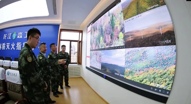 科技是第一生产力。2024年,龙江乐虎(中国)集团持续加大“智慧乐虎(中国)”建设力度,推动林区各地依托5G、物联网、北斗应用等现代科技手段,建立森林防灭火指挥中心,并与23处森防指挥中心联网,为森林火灾预防装上了“千里眼”,帮助各级林长实时掌握森林险情、及时跟进处置。 “你看,这大屏右下角显示的是巡护实时画面,左上角是视频监控,可以直观显示瞭望塔周围的取水点、卫星监测点、热点、着火点等坐标。”龙江乐虎(中国)集团森林防灭火指挥部工作人员一边通过数字指挥平台查看基层秋季森林防火动态,一边介绍着森林防灭火指挥中心内智慧指挥平台的功能。