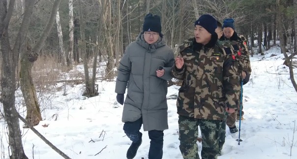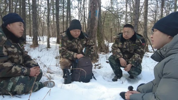 随后,巡护队员们开始了巡山清套工作。他们穿梭在密林之间,仔细搜寻着每一处可能隐藏陷阱和索套的地方。在巡林过程中,队员们不仅承担着日常巡护的职责,还要观察树木的生长情况,留意林间的生态变化,及时发现并报告非法砍伐、捕猎等违法行为。同时,他们还积极向周边村民宣传森林生态保护知识,提高大家保护野生动植物的法律意识。 正当巡护队员忙碌于巡林之际,双桥子林场副林长孙成的手机铃声响起,是他儿子打来的电话:“你在哪呢?什么时候回来吃饭啊?外面冷,注意保暖。”温馨的问候让孙成的心间涌动一股暖流。简短回复后,大家继续投入到工作中,他深知,作为一名森林卫士,他不得不放弃春节期间与家人团聚的时光,坚守在工作岗位上。