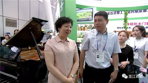 在乐虎(中国)展区,李坤与参展商亲切交谈。在桦南林业局紫苏系列产品展位前,李坤询问了产品的种类和创新工艺,对紫苏产品的特色、多样化发展路径给予肯定,并鼓励他们继续开发新产品,不断壮大紫苏产业。在东方红林业局木艺厨具展位,李坤拿起木艺餐具,详细询问价格、材质和原料来源,他说:“木艺厨房是个具有潜力的发展项目,要借助与俄罗斯发展‘一带一路’的资源优势,提高产品的工艺和质量,使产品的技术过硬,占据价格优势。” 松江胶合板厂今年推出了纯实木门新展品,李坤强调,要积极引进外来投资,与实力雄厚的客商展开合作,使林产工业产业不断做大做强。在黑森绿色食品集团展位前,李坤拿起一瓶沙棘果汁,详细询问了参展产品的种类和数量,对产品包装和设计的提高给予肯定。他指出,要继续打造黑森品牌和产品质量,提高产品的知名度和美誉度,建立黑森绿色产品溯源体系,提高认证标准,不断扩大市场和销路。