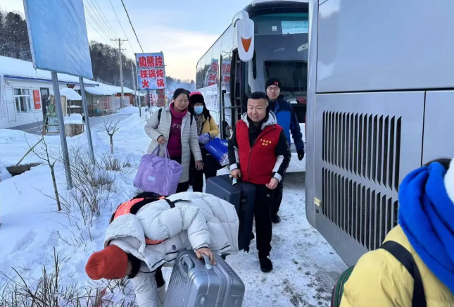 为了方便游客找到志愿者,景区为志愿者们配备了统一的红色志愿马甲和志愿者服务标志。从售检票大厅到游客服务中心,从羊草山到雾凇岭,从雪谷穿越到雪谷大舞台,只要游客有需要,就有志愿者们奔忙的身影。提供咨询、引导游客、维护秩序、失物招领、设施维护……志愿者们用温暖的笑容驱散了冬日的寒冷,用真诚服务赢得了各地游客的赞誉。 “您好,请往边上让一让,别碰到大家……”一辆辆满载游客的观光车陆续驶进中国雪谷景区,看到一位游客一手吃力地拉着行李箱一手牵着孩子,志愿者陈峥赶忙走上前。“您好,欢迎来到中国雪谷,我是咱们当地的志愿者,我们可以免费帮您托运行李。” “景区的工作人员真的太热情了,在这里天气虽然冷了些,但我们的心真的很温暖!”到达了预订的民宿,广西游客王女士接过行李后感激地说。“我们每天主要负责帮助游客托运行李,游客大老远来一趟不容易,能为他们服务,就算是累点也值!”陈峥边说边拉着爬犁走向换乘站点去迎接游客。