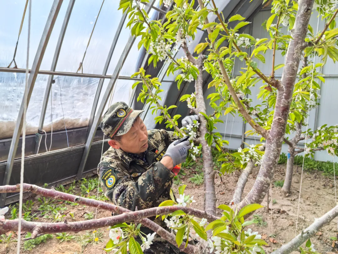 随着天气逐渐回暖,清河林业局有限公司智能果蔬种植基地呈现出一片生机盎然的景象。大棚内的大樱桃迎来了盛花期,工作人员抢抓时机,进行授粉作业,为今年的丰收打下良好基础。