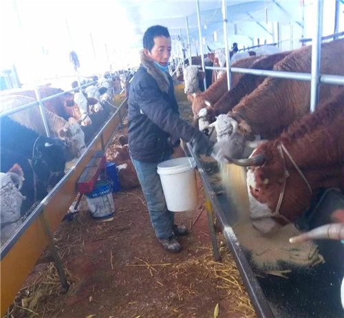 二十年前,正值壮年的许广友得了脑瘤,治病花掉了家里的全部积蓄,手术后身体落下了残疾,无法从事重体力劳动。那段时间他也曾抱怨命运的不公,对未来充满迷茫,但日子还要过下去,一家人还得靠自己挣钱养活。经过深思熟虑和多方考察,他选择了养牛。 俗话说:万事开头难。2000年许广友病好以后,四处筹措资金,先在自家院里盖起了简易牛舍,买了几头本地肉牛开始饲养。别看许广友文化不高,但头脑灵活、聪明好学,照着书本研究,跟有经验的养牛户请教,很快就掌握了养殖技术。由于缺少资金,没钱买饲料,许广友就和爱人开着手扶车起早贪黑到处收捡玉米秸秆做饲料,本林场没有了就到外地去拉。牛防疫和生病,他就自己给牛打针,时间长了成了半个兽医。经过几年的努力,辛苦付出渐渐有了回报,养牛规模从几头发展到几十头,饲养品种从本地黄牛换成了生长快、品质好的西门塔尔优质肉牛。