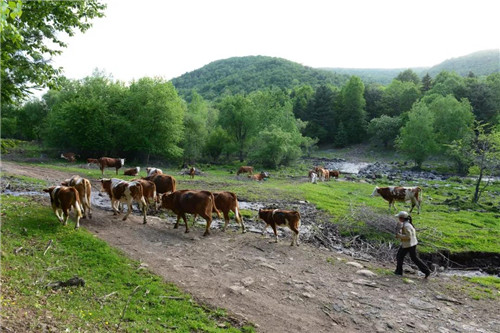 有道是打虎亲兄弟,上阵父子兵。4年前,老潘的儿子小潘毕业回到了林场,让养牛风生水起的老潘如虎添翼。“在这个时间段提出买牛的其实是我儿子,他觉得禁牧是改变当地畜牧业的转折点,是个好机会。”小潘毕业回来后,他就带着父亲多次去往周边的大养殖场参观考察,联系了多家兽医站和屠宰厂,在开阔思维的同时,‘转型’是小潘考虑最多的一点。“禁牧是早晚的事,像放牧那种粗狂型的养殖手段,形成不了产业化、集约化、规范化的现代畜牧发展。像我们这样的小散户最终要把落脚点放在科学养殖上。”小潘用发展的眼光看待了这个问题。禁牧一来,林区养殖户必然减少,当地牛肉市场求大于供,前景看好。 老潘的妻子孙桂琴说:“以前他俩养牛的初衷就是为了致富,稳稳当当就行,但是自从儿子回来之后,他爷俩的心思就活份了起来。”又要扩大经营,又是搞网店销售。去年,小潘让他家的牛肉在朋友圈里火了一把,牛肉被朋友们一扫而空。今年他还想搞一些网络销售,自己屠宰加工,每块肉都能卖上不一样的价,拓展一些销售渠道。