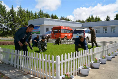 营林绿化稳推进。西丰林场场区内共栽植各类树木1066株,栽植花卉10000株,修剪绿篱5097延长米;宝马山林场在进出场两公里道路两侧、场区栽植绿化树 560 棵,绿篱补造2500余株,栽花10000余株;曙光农场共完成补栽绿篱5000余株;补栽绿化树7种758株,新栽果树7种818株,新植灌木5种2660株。山下综合验收队对办公室栅栏整体布绿、花池造型、花箱布景,做到环境建设整齐划一。试验苗圃设置果园围栏160延长米;打造公厕文化,对公厕进行粉刷、安装声控灯、更换地板、张贴文化图版,美化绿化香化圃区;把每周一定为环境整治劳动日,使生产办公环境更加的洁净整齐靓丽;迎春蜂产品有限公司,种植花卉3000余株,打造1200平方米玫瑰园,园区两侧栽种绿化盆栽,并对绿化面积进行管理,场区内外做到了窗明几净、美化香化。